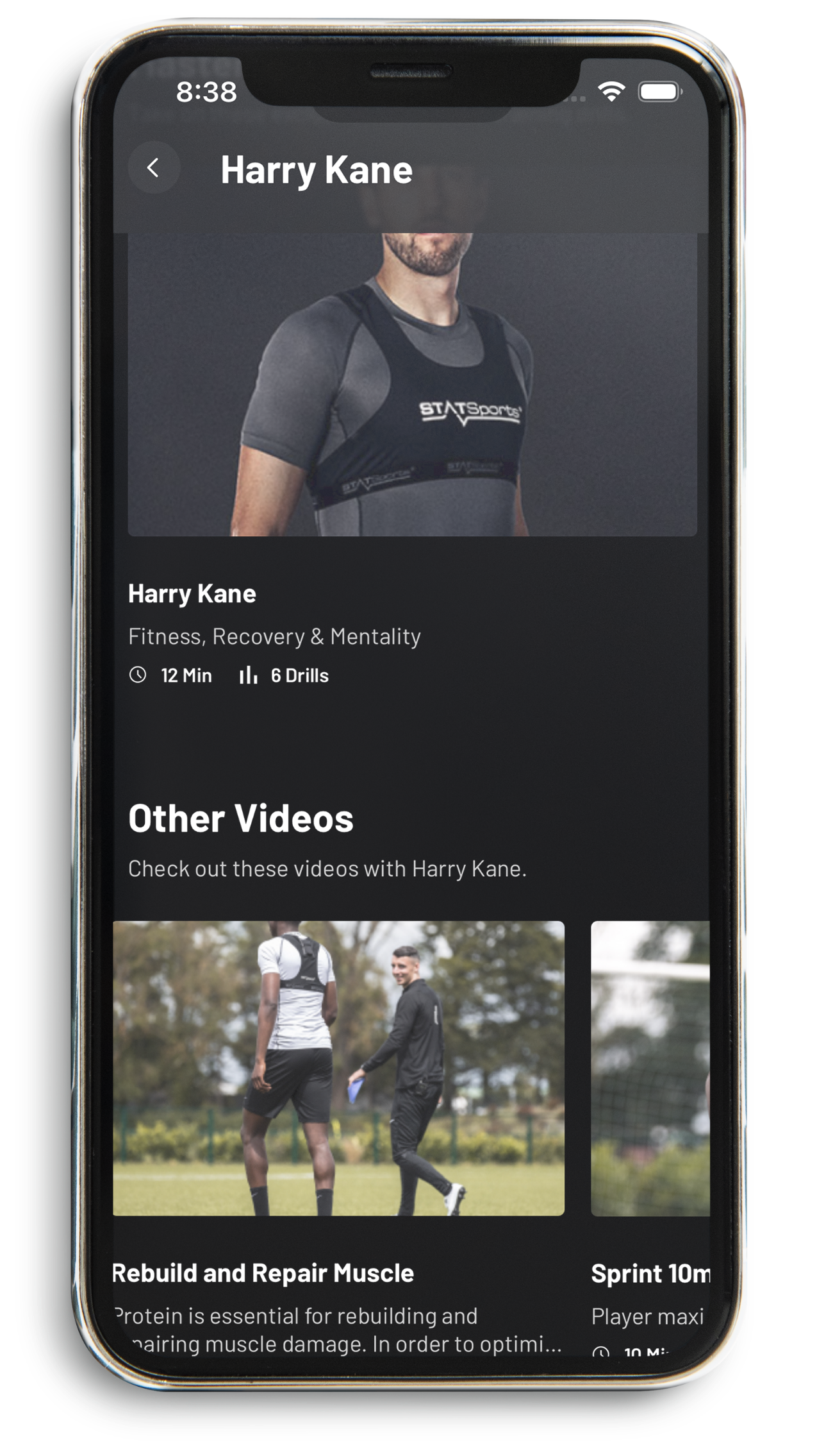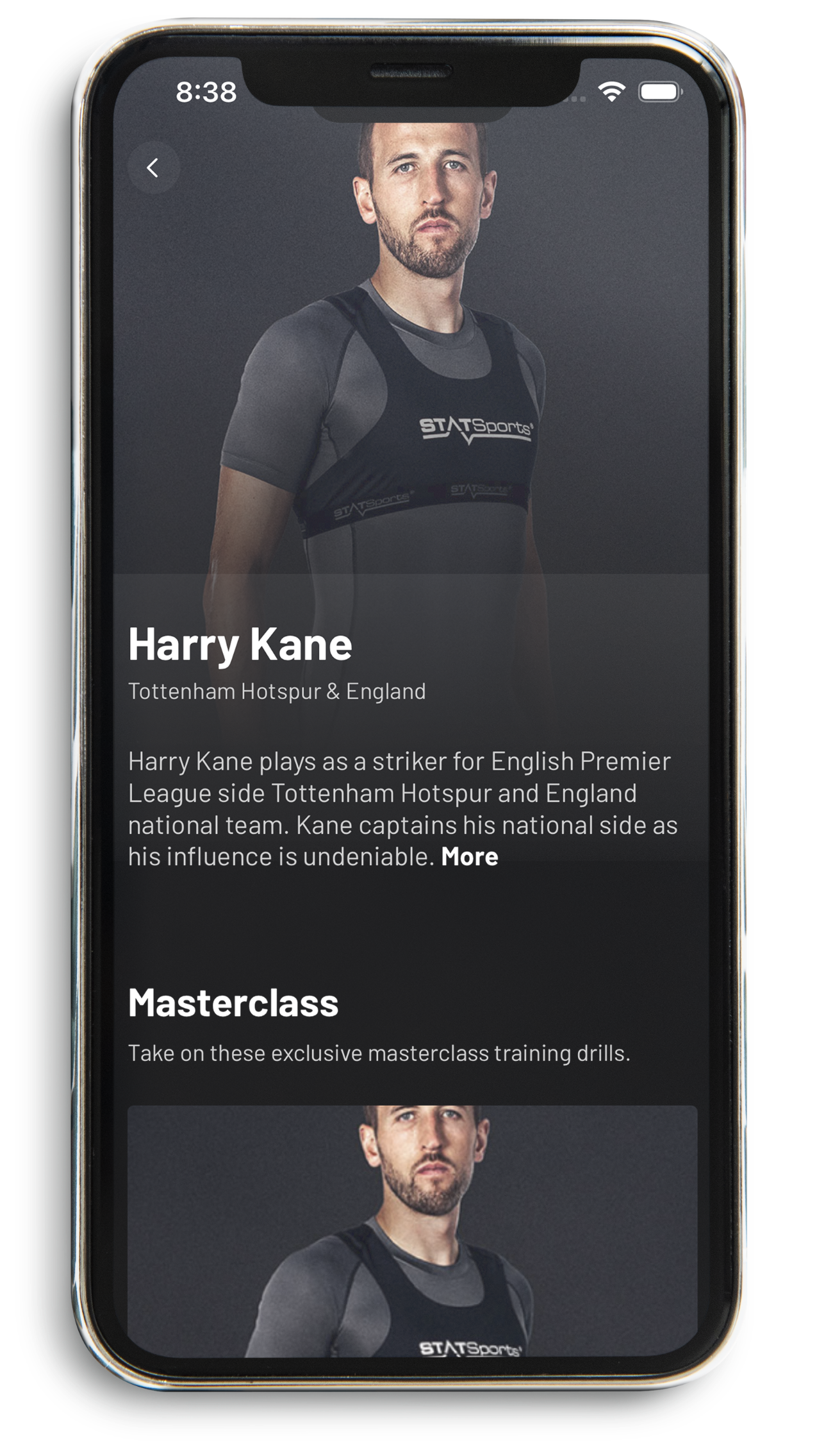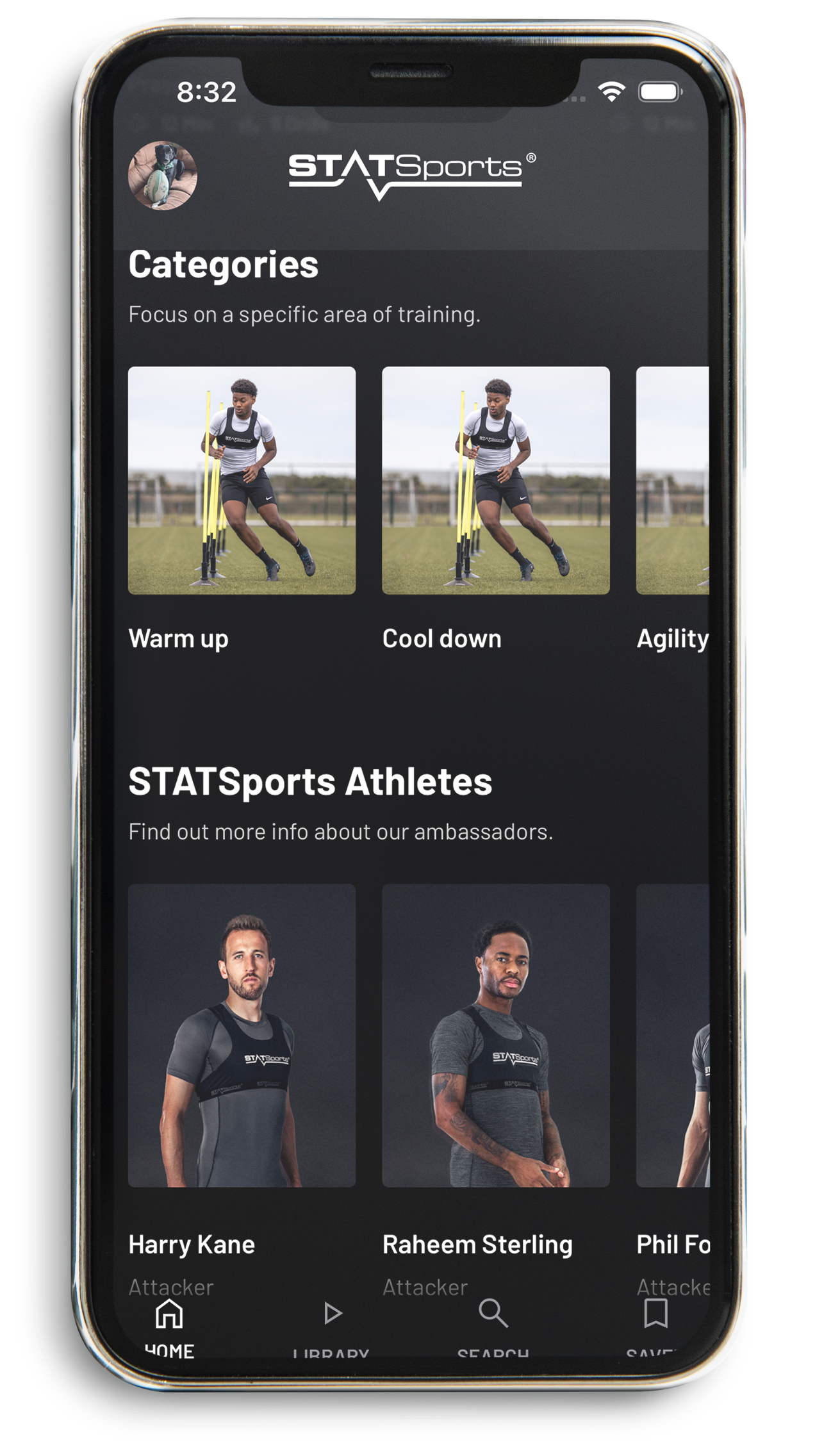 The home screen greets users with a selection of recommended and trending drills, exclusive masterclasses, athlete information about Statsports ambassadors, personal profile & settings, and an exciting countdown to the next drill release.